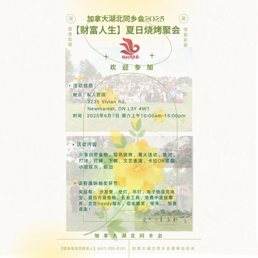 本次活动预计参与人数约200人,内容包括烧烤、文艺表演、亲子游戏、排球、卡拉OK、打牌等,将为湖北乡亲提供丰富的互动与交流机会。